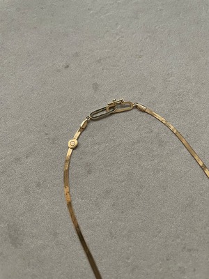 このチェーンは平面のチェーンで駒の動きに特徴があり、とても美しい光の反射をしてくれるのですが、折り目をつけてしまうと完全に回復しない性質があり跡が残ってしまう場合があります。