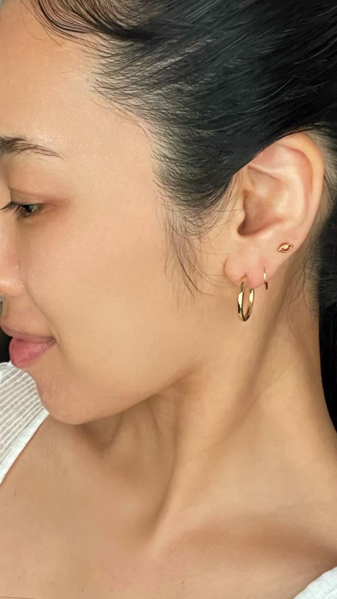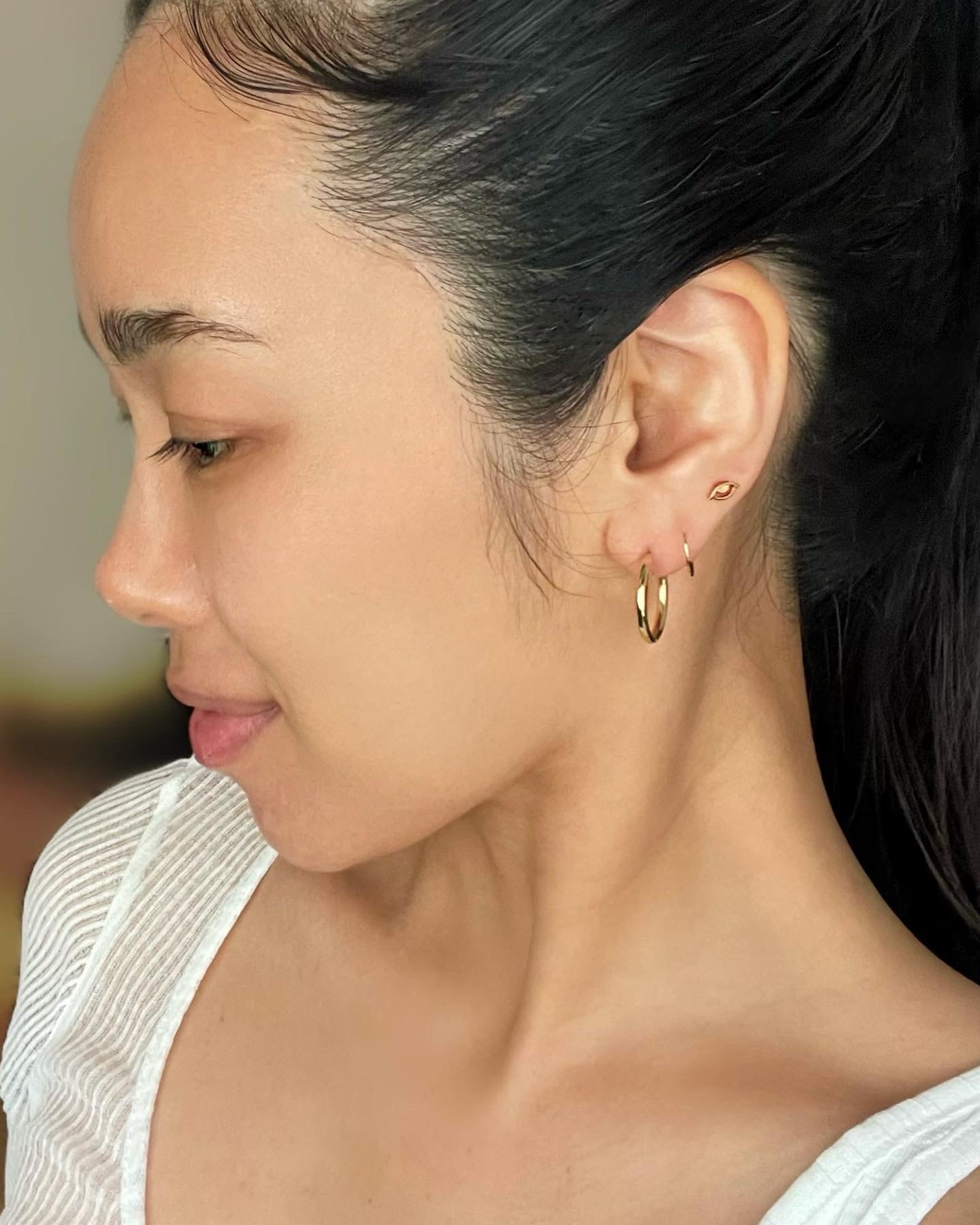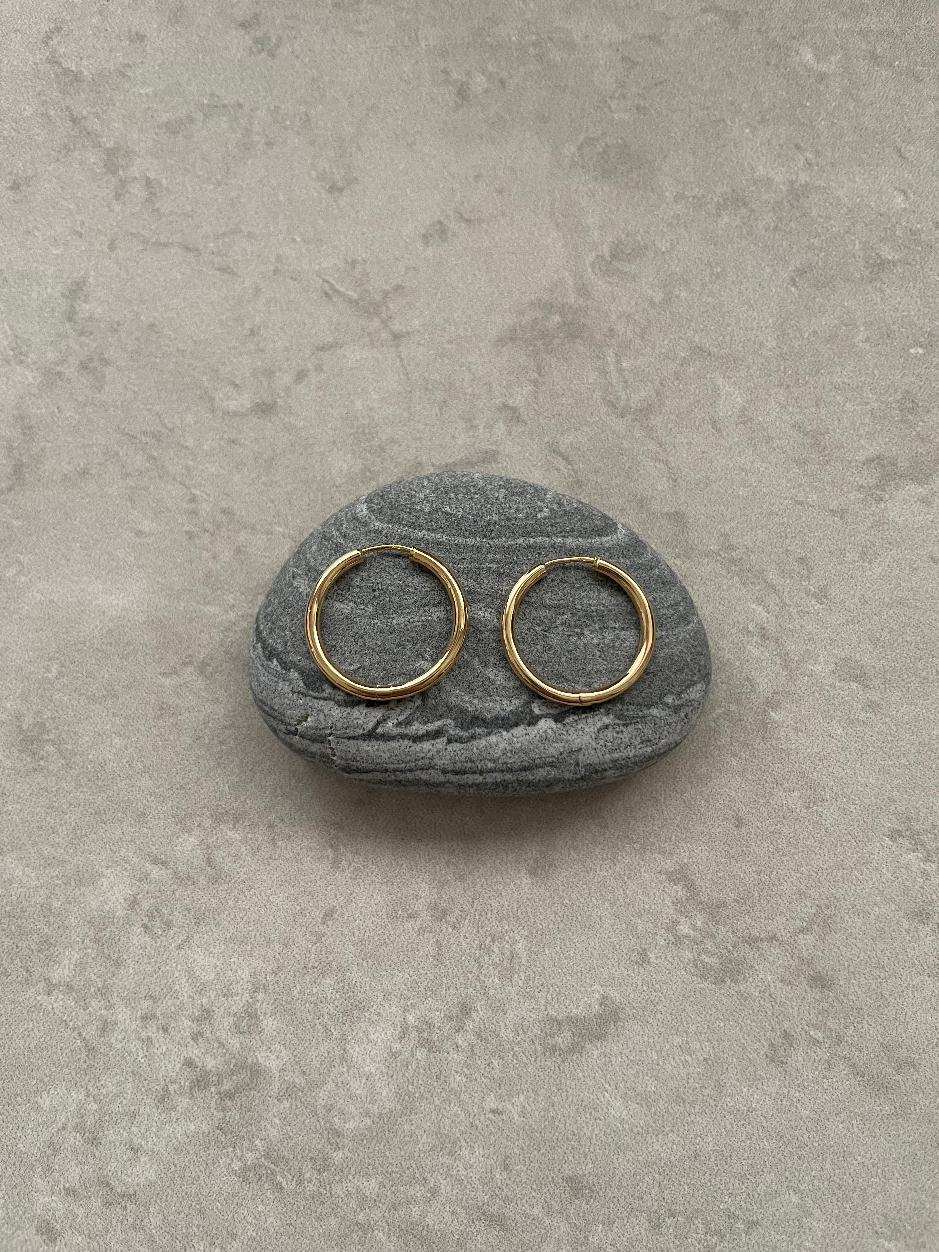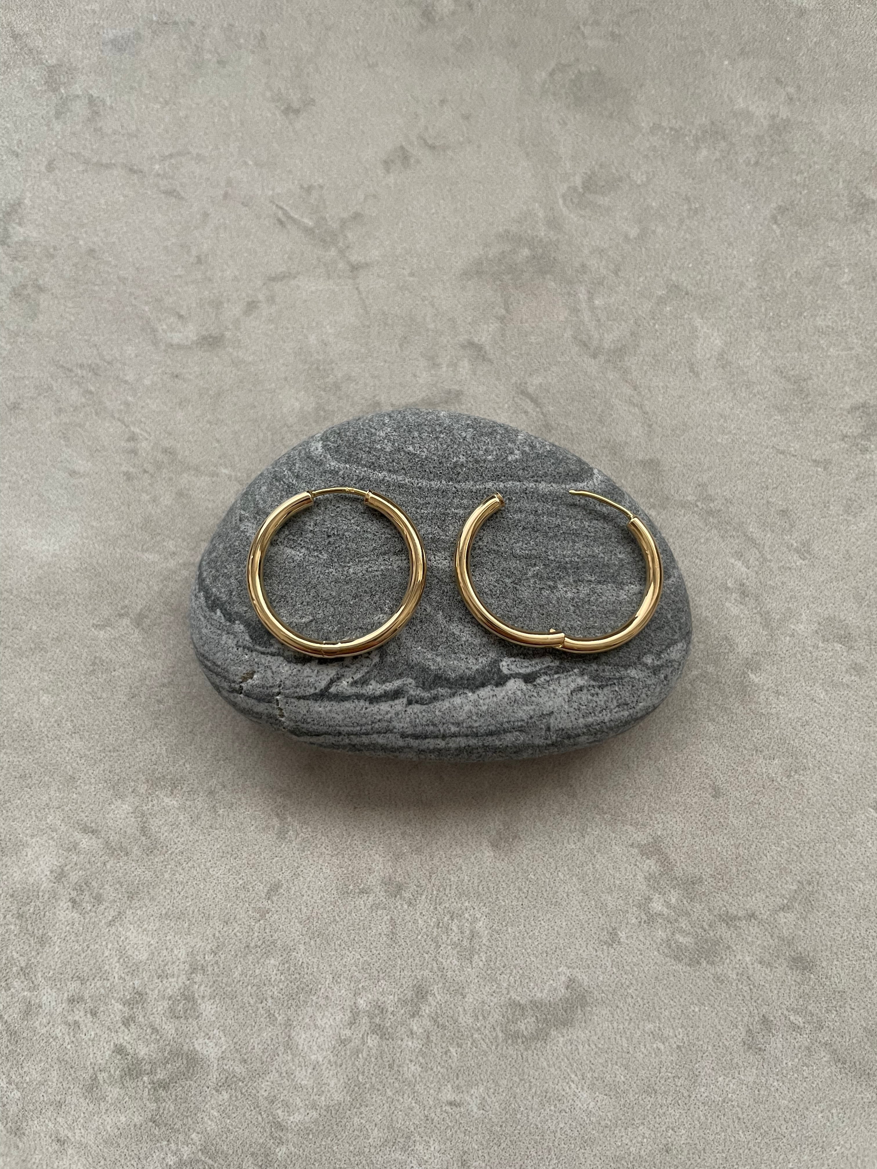 古代から魔除けの意味を持つゴールドのフープピアス。